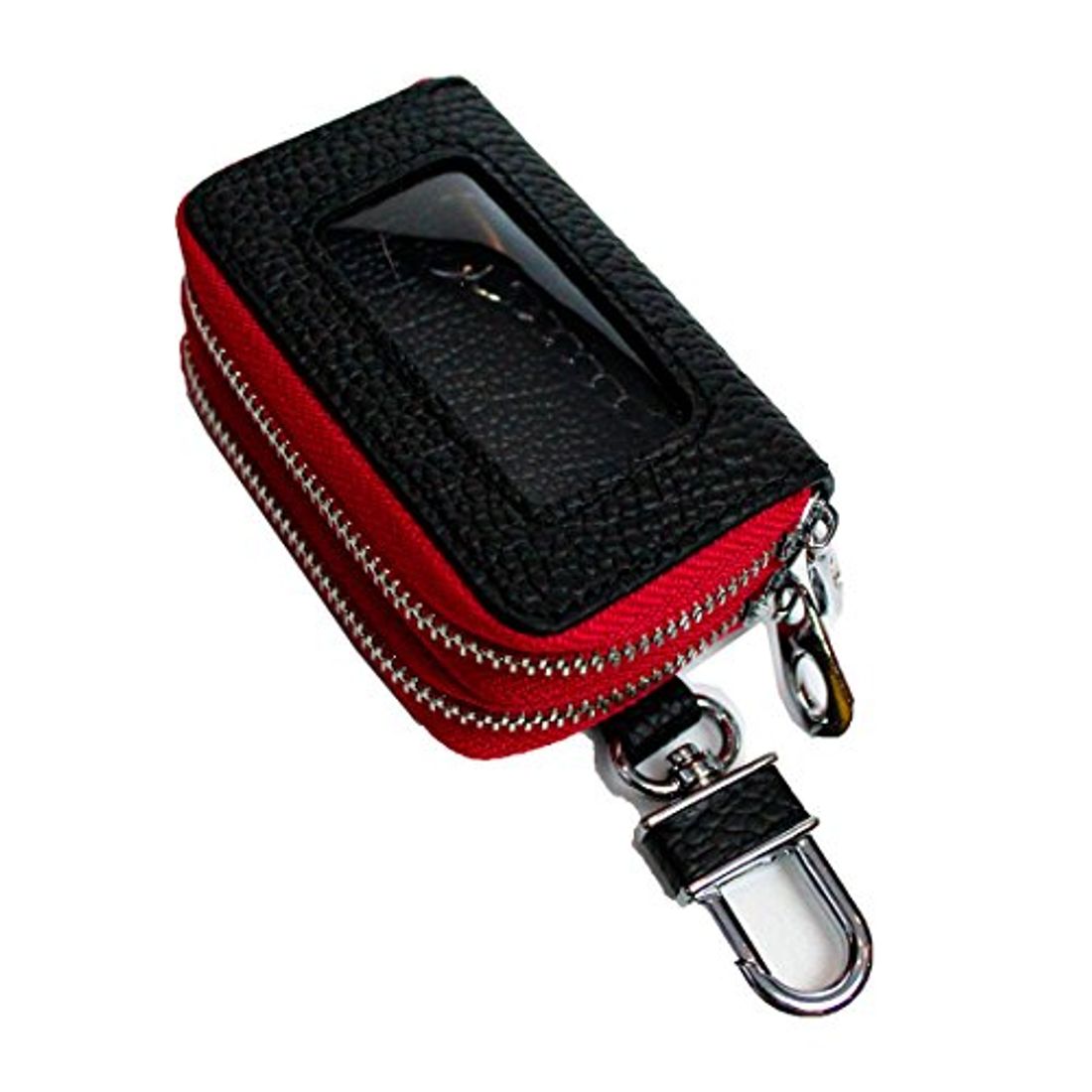 Amazon ダブルスマートキーケース 高級 牛革 車キーケース レザー キーチェーン キーホルダー 2つ鍵が収納 窓付 カラビナ付き ワインレッド キーケース キーホルダー 車 バイク